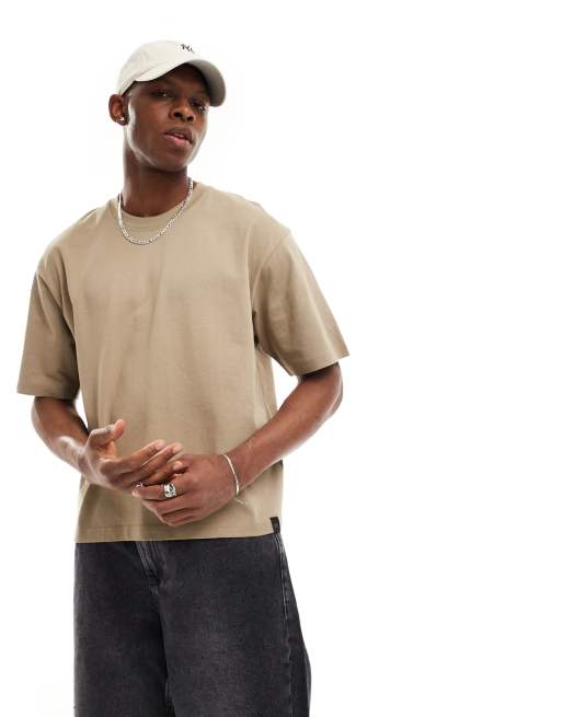 Pull&Bear – Beige t-shirt med boxig passform