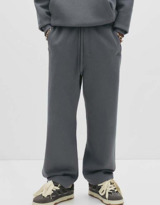 Pull&Bear – Blågrå, kraftiga mjukisbyxor