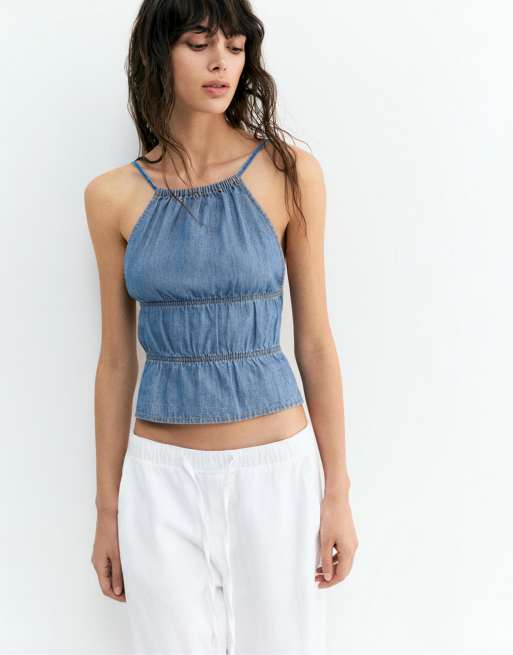 Pull&Bear – Blekblå, böljande topp med smala axelband
