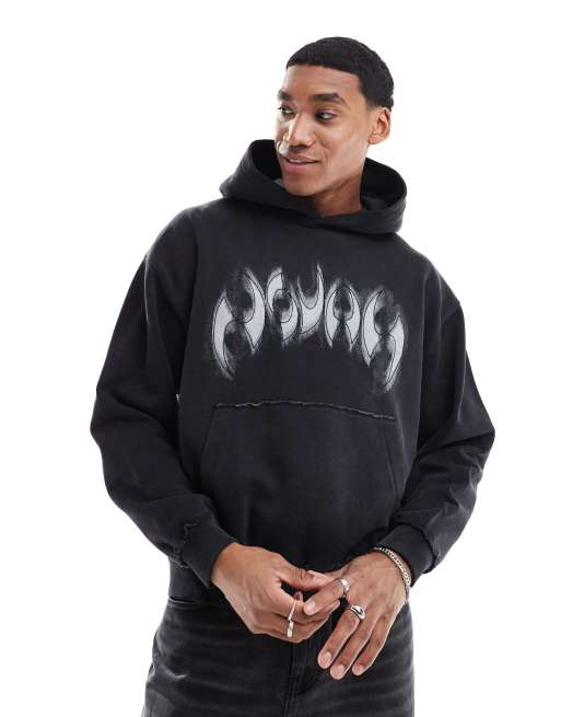Pull&Bear – Bleksvart huvtröja med grafittitryck