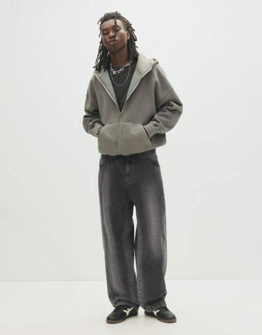Pull&Bear – Bleksvarta, baggy jeans med ledig passform