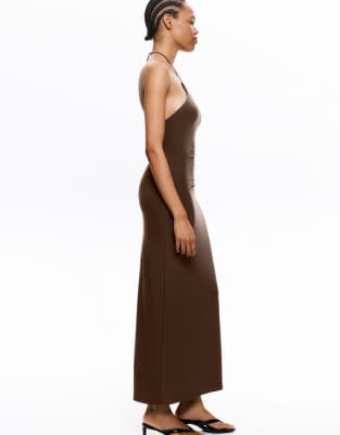 Pull&Bear – Brun, draperande midiklänning med halterneck