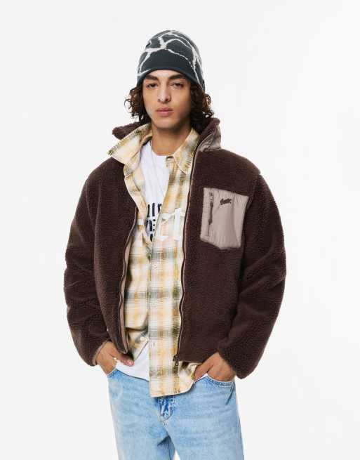 Pull&Bear – Brun jacka i blandad fårskinnsimitation