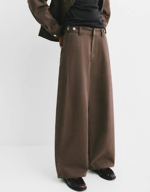 Pull&Bear – Bruna jeans i ballongmodell med justerbar midja