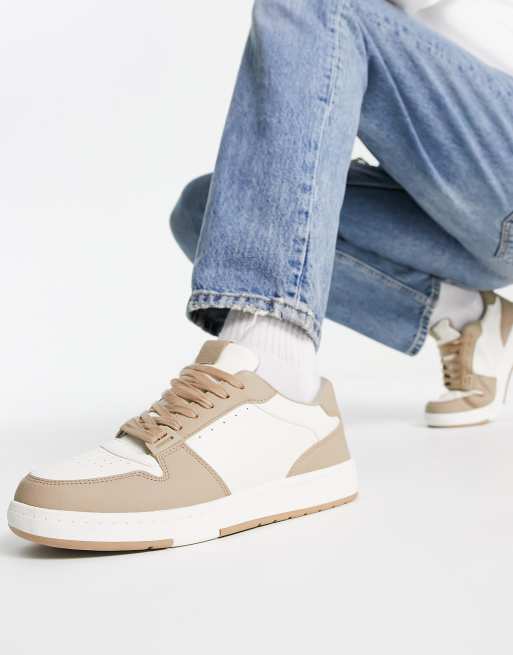 Pull&Bear – Bruna och vita sneakers med lågt skaft och snörning