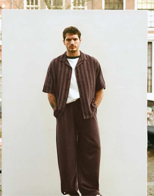 Pull&Bear – Brunrandig skjorta med korta ärmar