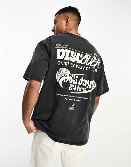 Pull&Bear – Discover – Svart t-shirt med tryck baktill