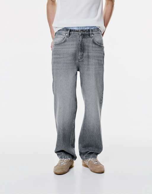 Pull&Bear – Grå, baggy jeans