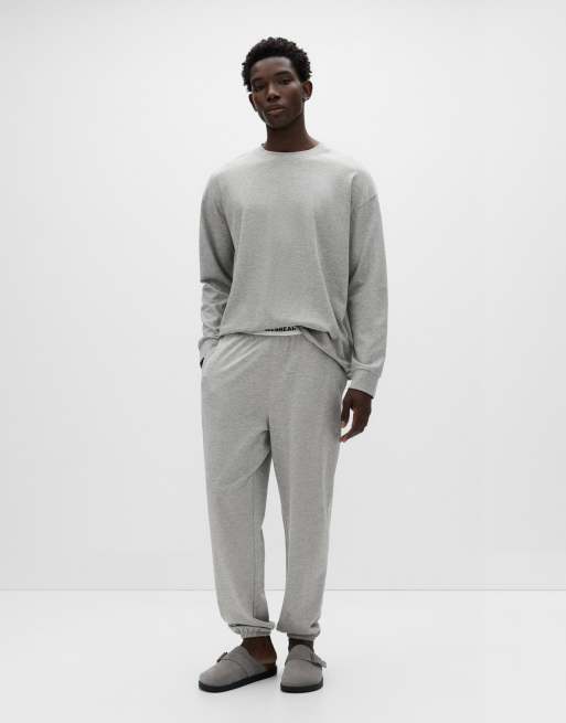 Pull&Bear – Grå pyjamas med elastisk midja och logga