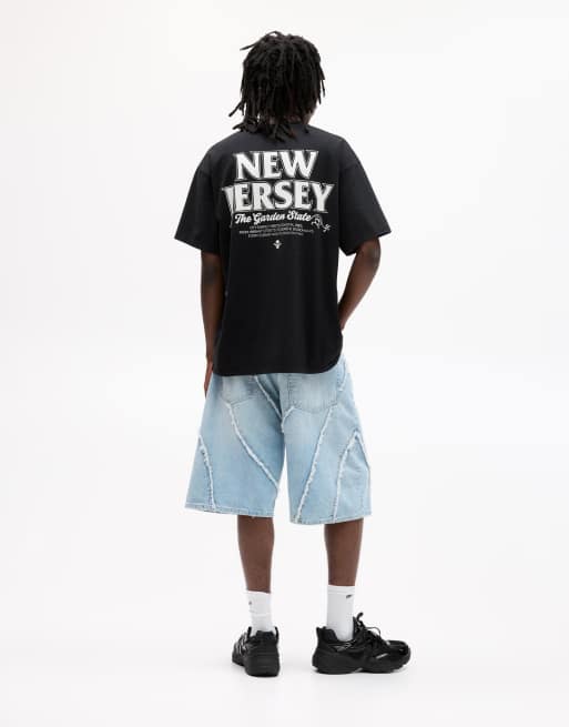 Pull&Bear – Grå t-shirt med New Jersey-tryck