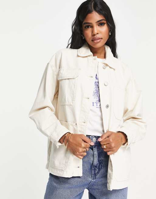 Pull&Bear – Gräddvit jacka i bomull och oversize