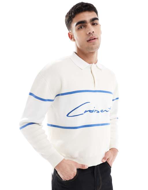 Pull&Bear – Gräddvit, stickad pikétröja i retrostil