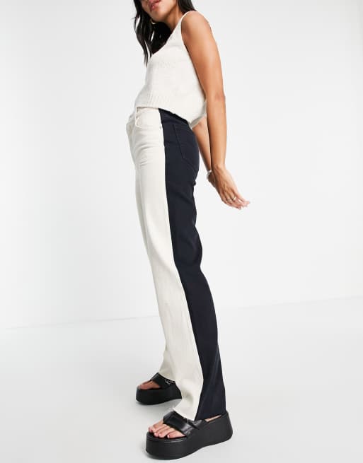 Pull&Bear – Gräddvita och svarta jeans med raka ben