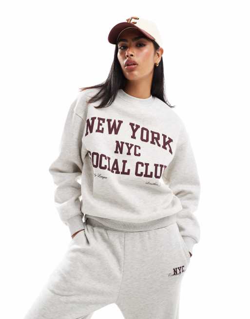 Pull&Bear – Gråmelerad sweatshirt med New York-tryck, del av set