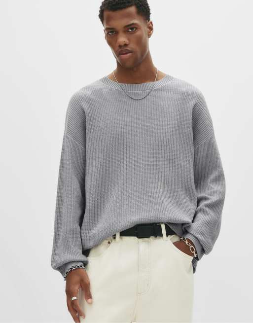 Pull&Bear – Gråmelerad, våffelstickad tröja