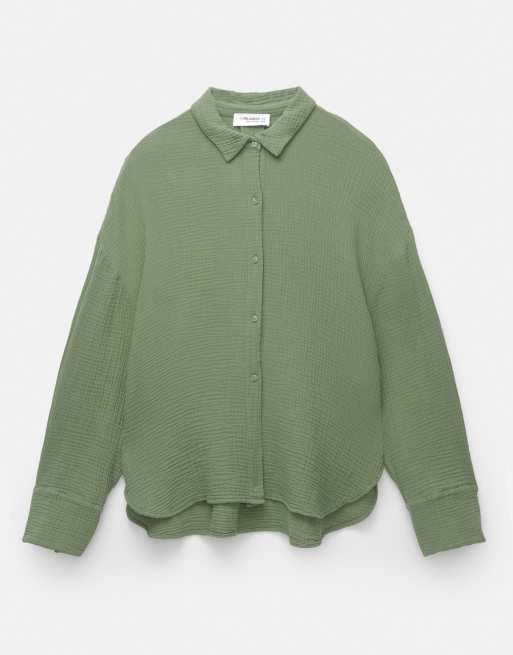 Pull&Bear – Grön skjorta i chiffong med långa ärmar