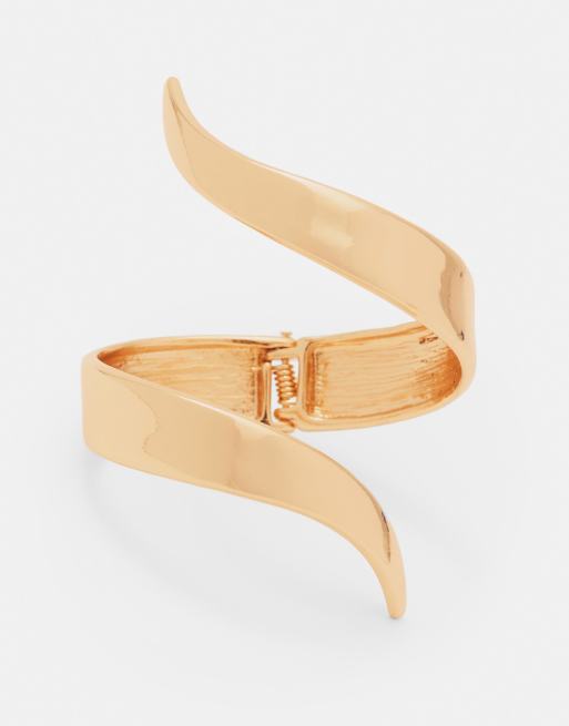 Pull&Bear – Guldfärgad, styv armring med vågmönster