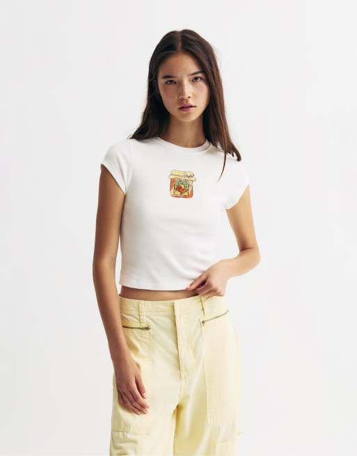 Pull&Bear – Jam – Vit t-shirt med tryck