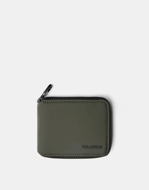 Pull&Bear – Kakifärgad, gummerad plånbok