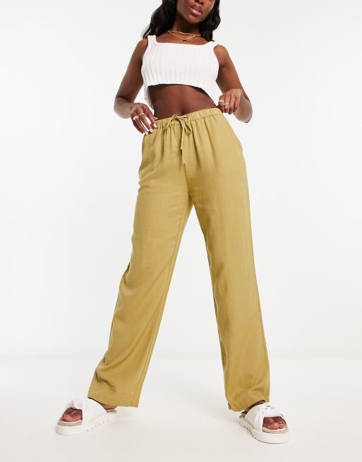 Pull&Bear – Kakifärgade linnebyxor med hög midja