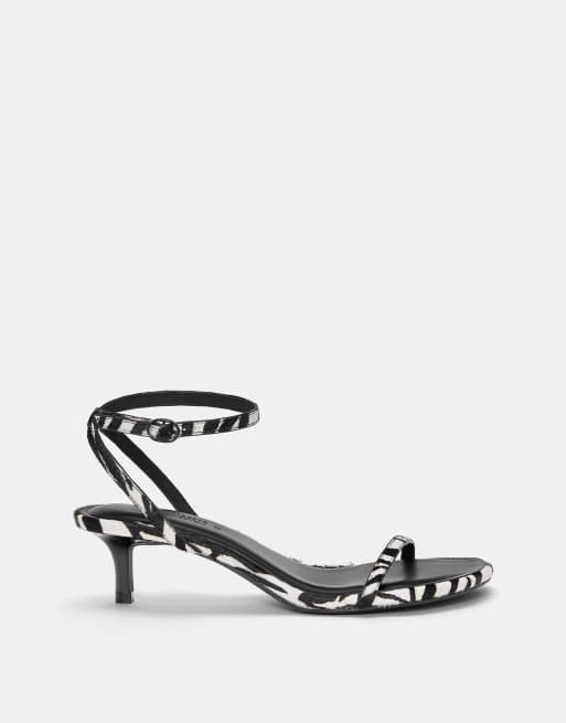 Pull&Bear – Kontrastfärgade, zebramönstrade lädersandaler med klack