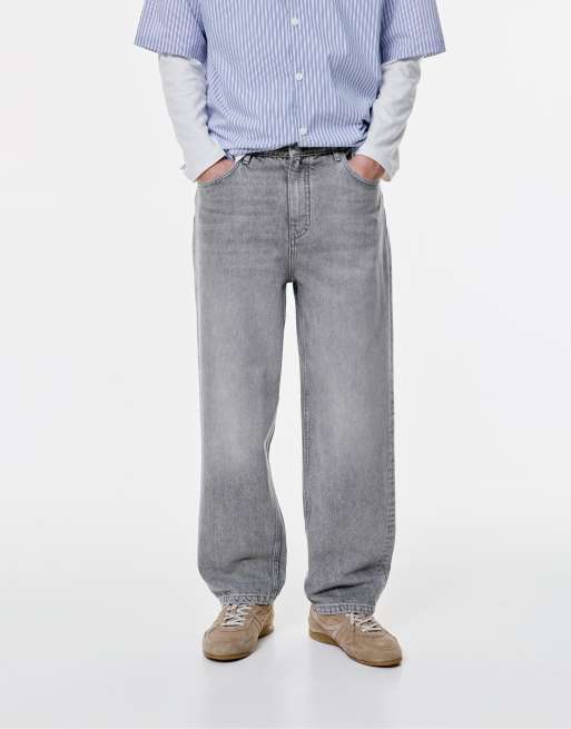 Pull&Bear – Ljusgrå, baggy jeans