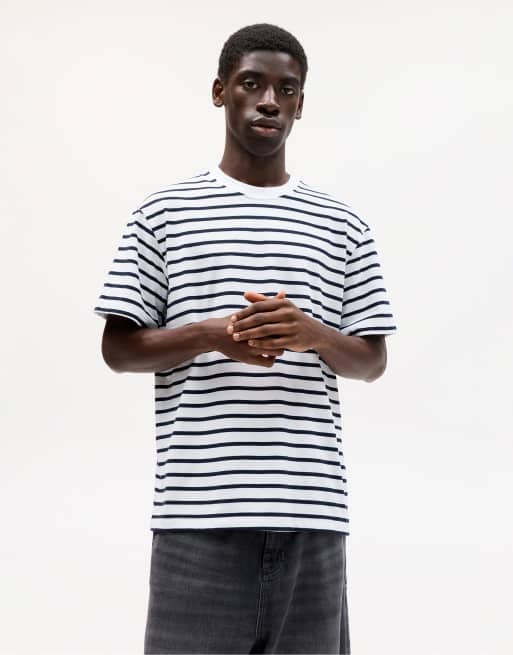 Pull&Bear – Marinblå kortärmad t-shirt med ränder