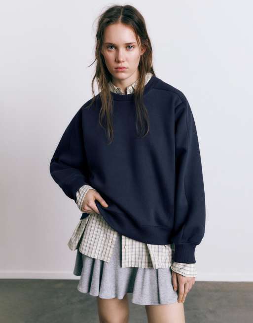 Pull&Bear – Marinblå oversize-sweatshirt med sömmar
