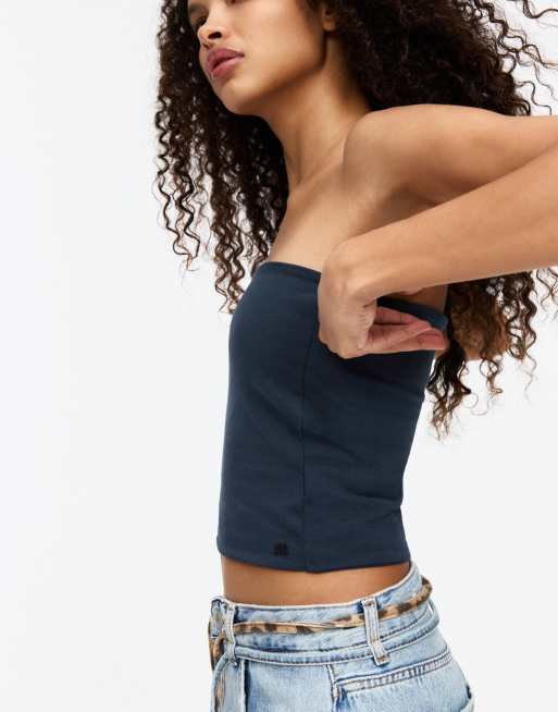 Pull&Bear – Marinblå topp med bandeauringning