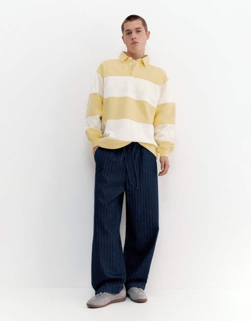 Pull&Bear – Marinblårandiga mjukisbyxor i denim