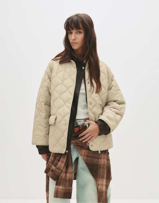 Pull&Bear – Mellanbeige pufferjacka med manchesterkrage