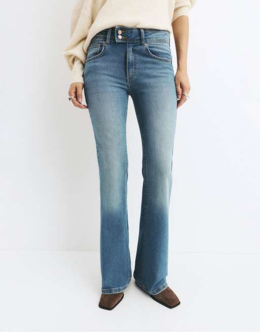 Pull&Bear – Mellanblå bootcut-jeans med låg midja