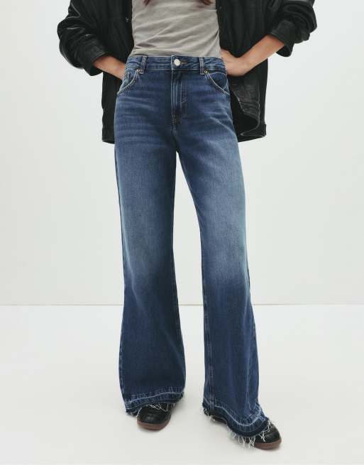 Pull&Bear – Mörkblå jeans med ledig passform och utsvängda ben