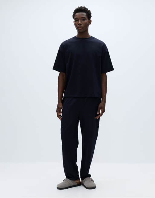 Pull&Bear – Mörkblå, kortärmad pyjamas