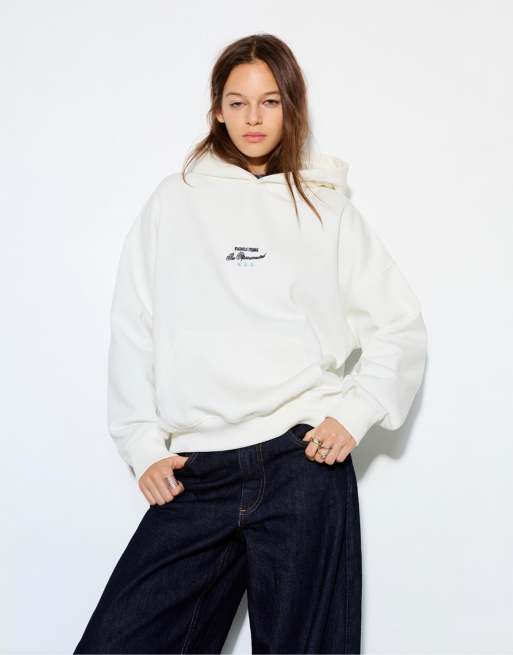 Pull&Bear – Naturvit huvtröja med broderade stjärnor