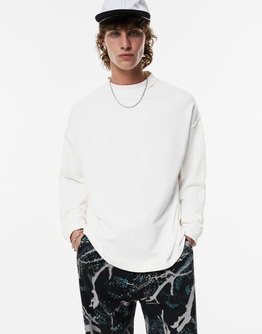 Pull&Bear – Naturvit, långärmad t-shirt med sömdetaljer