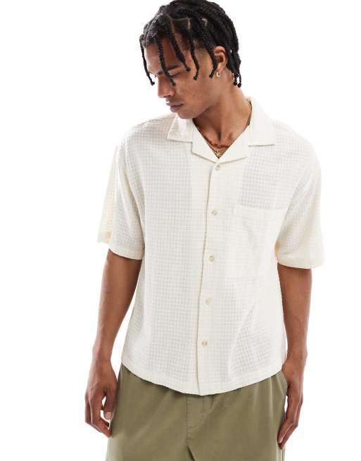 Pull&Bear – Naturvit, rutig skjorta i rustik stil