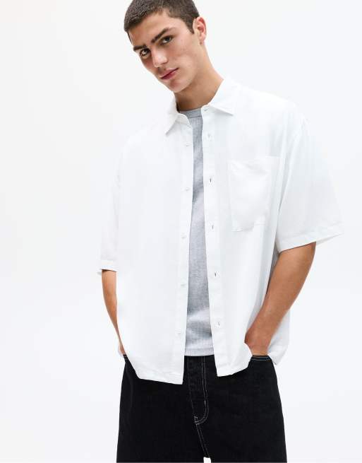 Pull&Bear – Naturvit skjorta med korta ärmar och volym