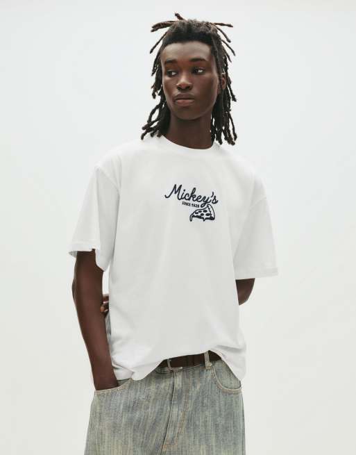 Pull&Bear – Naturvit t-shirt med Musse Pigg-tryck
