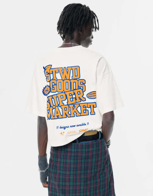 Pull&Bear – Naturvit t-shirt med STWD-tryck