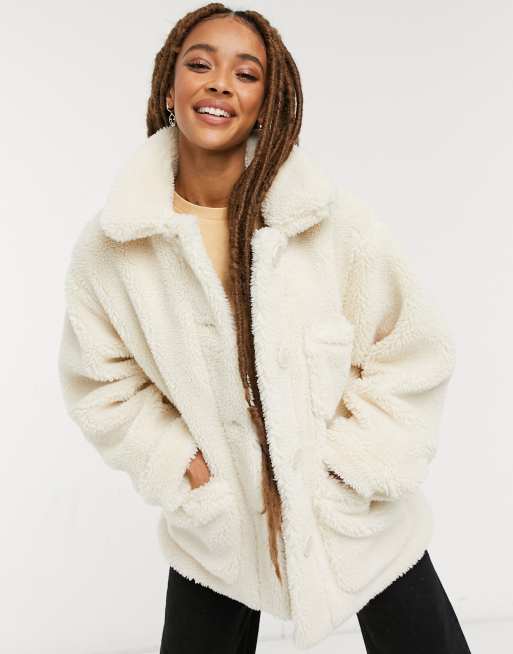 Pull&Bear – Naturvit truckerjacka i teddy