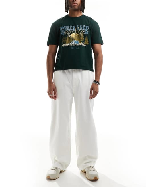 Pull&Bear – Naturvita, baggy jeans i dra på-stil