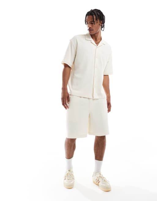 Pull&Bear – Naturvita shorts med frottétextur, del av set