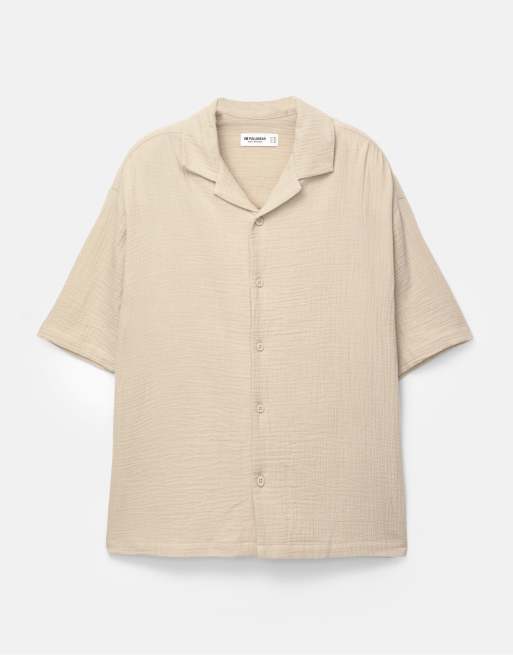 Pull&Bear – Ockragul, rustik skjorta med korta ärmar