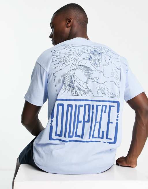 Pull&Bear – One Piece – Blå t-shirt med tryck baktill