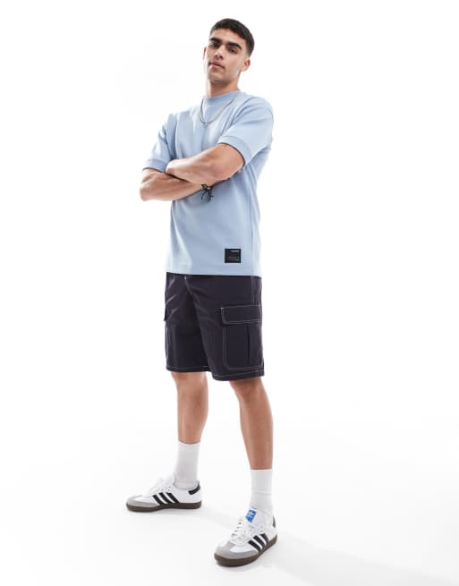 Pull&Bear – Petrolblå t-shirt med boxig passform