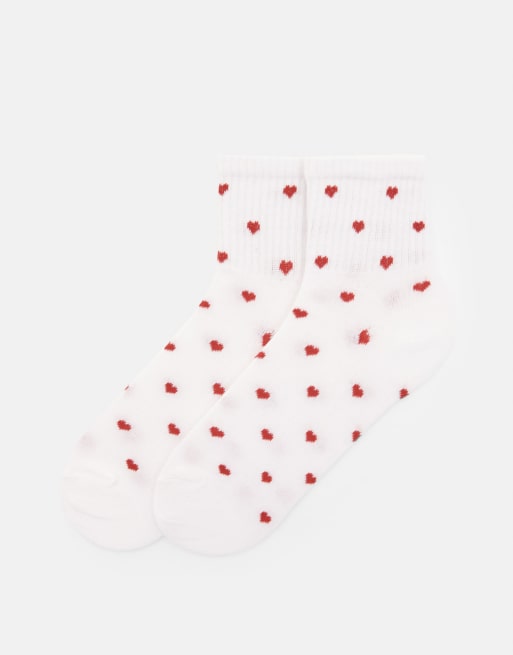 Pull&Bear – Röda strumpor med rullfåll och hjärtan