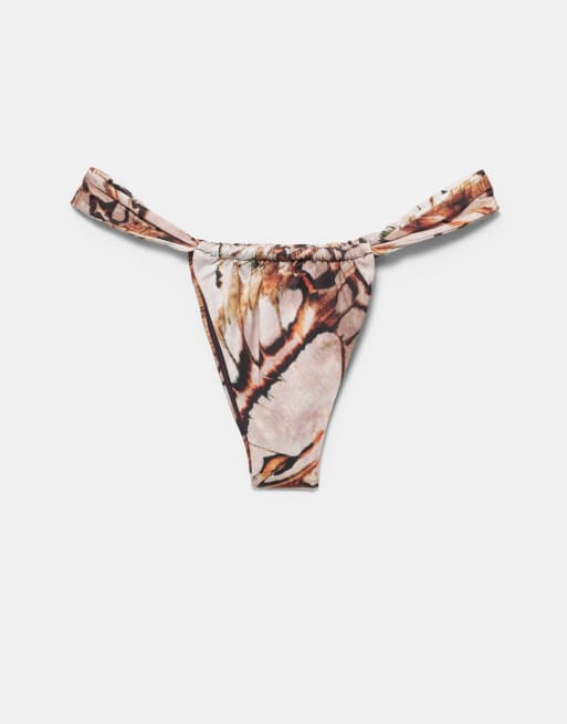 Pull&Bear – Rosa, fjärilsmönstrad bikiniunderdel med indragning