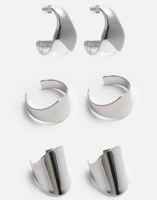 Pull&Bear – Silverfärgade creoler och öronsmycken, 3-pack