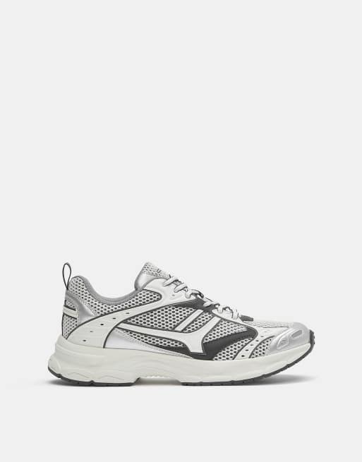 Pull&Bear – Silverfärgade, flerdelade sneakers